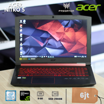 Acer Nitro 5 hadir buat nemenin sesi game kamu! 🚀 Dibekali Intel Core i5-8300H plus RAM 8GB bikin gameplay tetap mulus, ditambah SSD 256GB yang bikin loading game super cepat ⚡. Desain gaming khas Nitro dengan layar mantap bikin pengalaman main makin seru. Cocok buat yang mau performa nendang tanpa harus keluar budget gede! 🎮